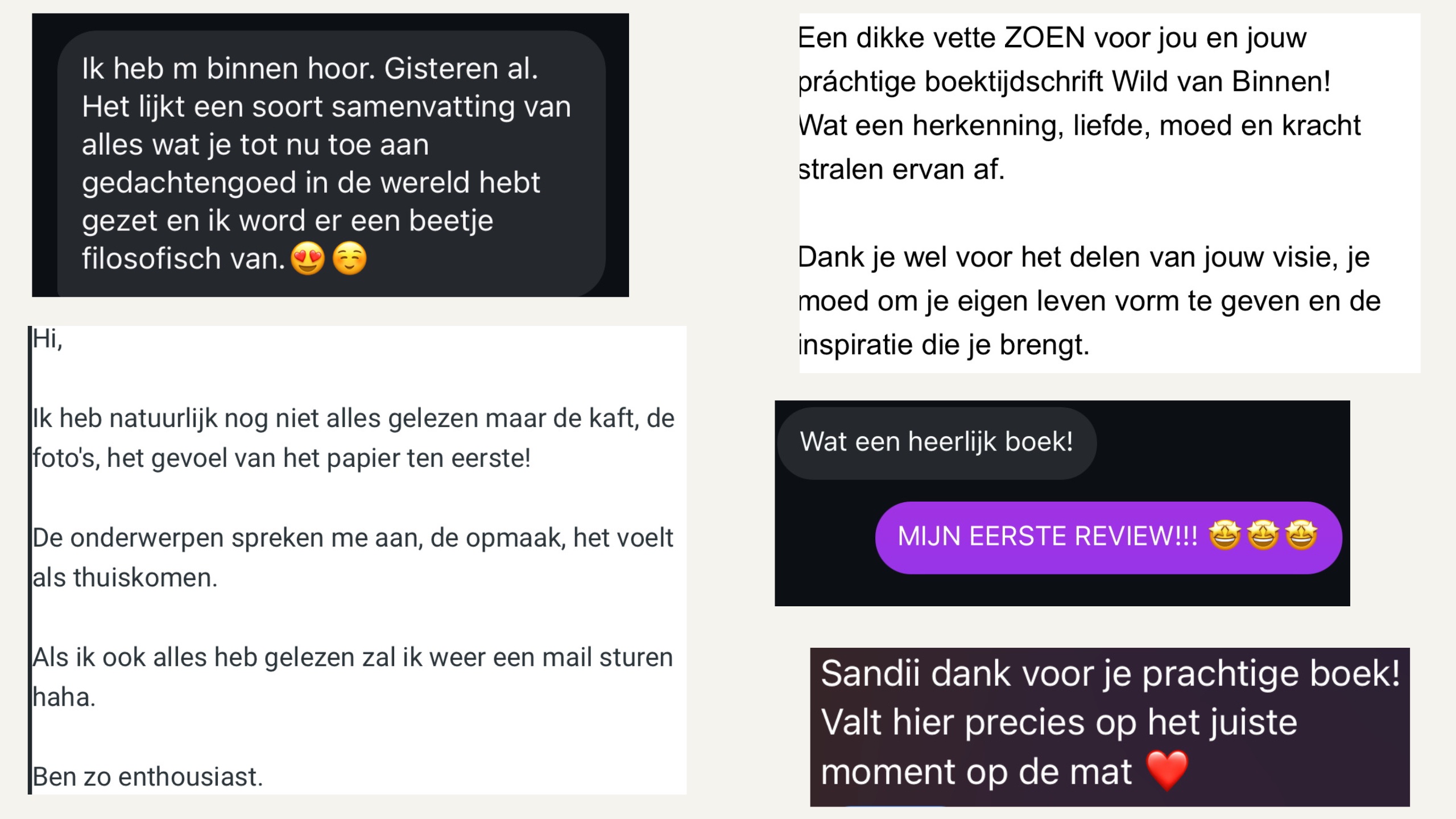 En dat boektijdschrift? Dat groeide 2 jaar later uit tot een magazine dat 4x per jaar uitkwam. Na 6 jaar voelde kennis over natuurlijk ouderschap delen voor Sandii wel klaar (het online platform bestaat overigens zeker nog, dat is verkocht) en kreeg het blad een nieuwe naam die meer pasten bij de nieuwe behoefte om niet alleen informatie op te slurpen, maar vooral ook bezig te zijn met je eigen ontwikkeling en dat begon bij de moeders: Wilde vrouw magazine. Daar zijn 8 nummers van gemaakt.